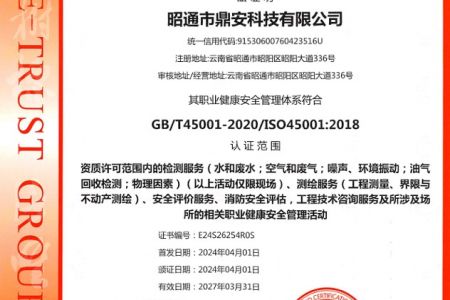 2003年11月10日,昭通市鼎安科技有限公司成立,初始主要從事第三方安全工程技術(shù)服務(wù),經(jīng)多年運(yùn)營,發(fā)展為多專業(yè)綜合科技平臺(tái),為社會(huì)提供多種專業(yè)技術(shù)服務(wù)工作。 現(xiàn)公司注冊(cè)資金為1200萬元,公司法定代表人:毛衛(wèi)旭。公司主要業(yè)務(wù):安全評(píng)價(jià)、安全標(biāo)準(zhǔn)化評(píng)審、安全工程技術(shù)服務(wù);環(huán)境監(jiān)測(cè)、職業(yè)衛(wèi)生檢測(cè)、檢驗(yàn);法律訴訟及非訴訟服務(wù);司法鑒定、固定資產(chǎn)投資項(xiàng)目節(jié)能服務(wù);工程咨詢;工程測(cè)量測(cè)繪;安全教育培訓(xùn)等。是安全生產(chǎn)服務(wù)、安全教育培訓(xùn)機(jī)構(gòu),也是環(huán)境監(jiān)測(cè)和職業(yè)衛(wèi)生服務(wù)機(jī)構(gòu),同時(shí)也是綜合的檢測(cè)檢驗(yàn)、綜合科技平臺(tái)服務(wù)機(jī)構(gòu)。多年來為公、檢、法、司、軍、警、海關(guān)、仲裁、安監(jiān)、工礦商貿(mào)企業(yè)、社會(huì)團(tuán)體及個(gè)人提供多專業(yè)技術(shù)服務(wù)。